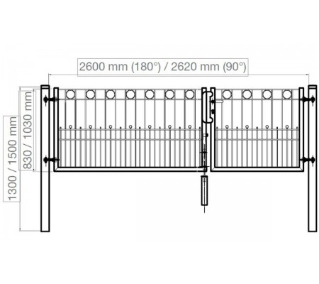 | Breite inkl. Pfosten | 2760 mm (2780 mm bei 90° Scharnier) |