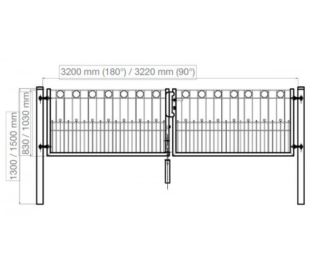 | Breite inkl. Pfosten | 3360 mm (3380 mm bei 90° Scharnier) |
