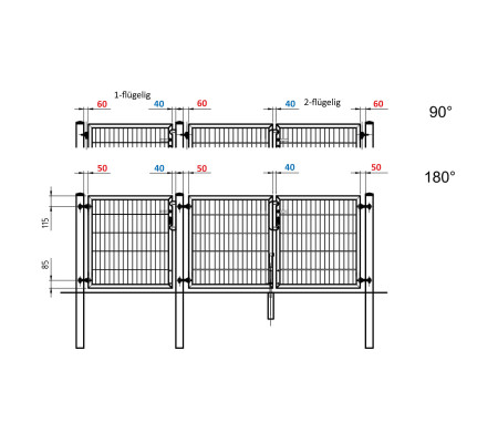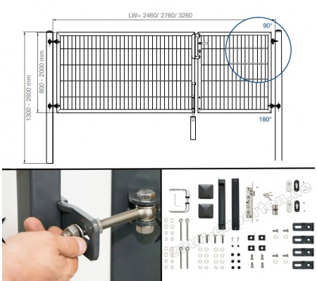 | Breite inkl. Pfosten | 2920 mm (2940 bei 90° Scharnier) |