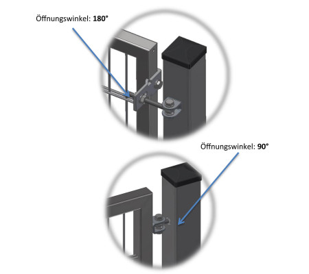 | Offnungswinkel | 90° oder 180° frei wählbar |