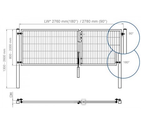 | Lichte Weite | 2760 mm (2780 mm bei 90° Scharnier) |